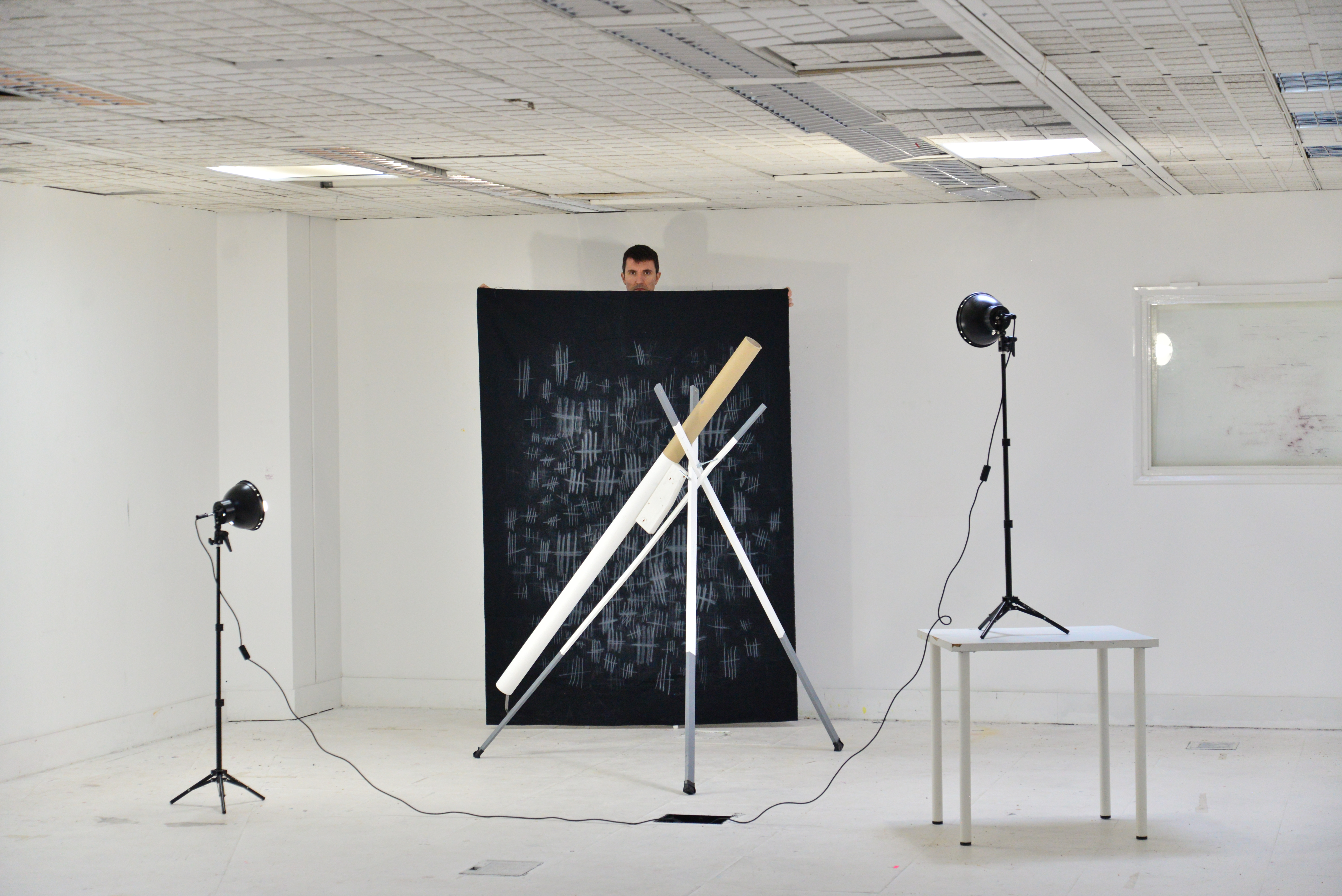 The guns is een project van Dejan waar ik aan mee heb geholpen. In het proces ben ik begonnen met het hout voor werken. Hij had allemaal rest hout gevonden wat ik bewerkt en voorbereid heb. Met tools ben ik gaan kijken hoe ik deze net kon afwerken en verven. Dit is met meer dan 100 verschillende stukken gebeurt. Daarna is het opbouwen van het geweer, stuk voor stuk reageer je op wat je al voor je hebt liggen en verf je de stukken. Ook hebben we met het tentoonstellen gespeeld in de studio. We begonnen met het vast houden, het ophangen en het liggen. Het moest denken aan een openhaard waar vroeger de wapens boven hingen. Dejan wilde er ook performance art bij betrekken en dat mocht ik doen. Hoe het zou zijn als er een levend vuur in de open haard zou zitten en als het bewoog. Hiervoor hebben wij veel verschillende poses en bewegingen geprobeerd. Uiteindelijk is ervoor gekozen om ze aan het plafond te hangen zodat je het gevoel krijgt of je ze wil aanraken.