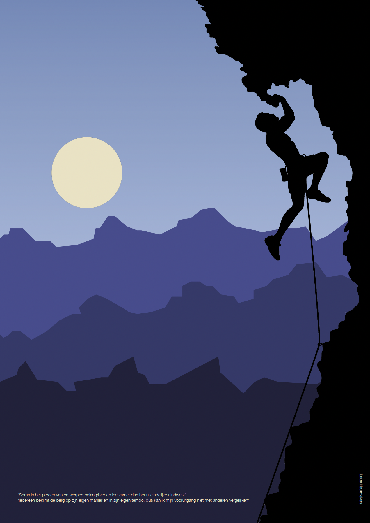 Over the years, I have created reflection posters to conclude my semesters. The purpose of these posters was to look back on the semester to see what I have learned and where I still need to improve. In these posters, you can see the growth in my designs and the search for my own design style. It evolves from literal text to increasingly clear images that convey the story. I delved into creating my own illustrations and experimenting with new software. As a result, these posters become a reflection of my semesters. They serve as a focal point to look back on and to build upon further.