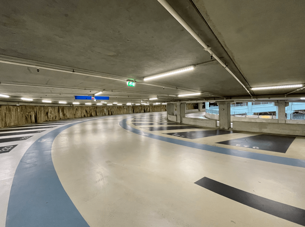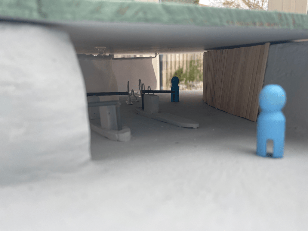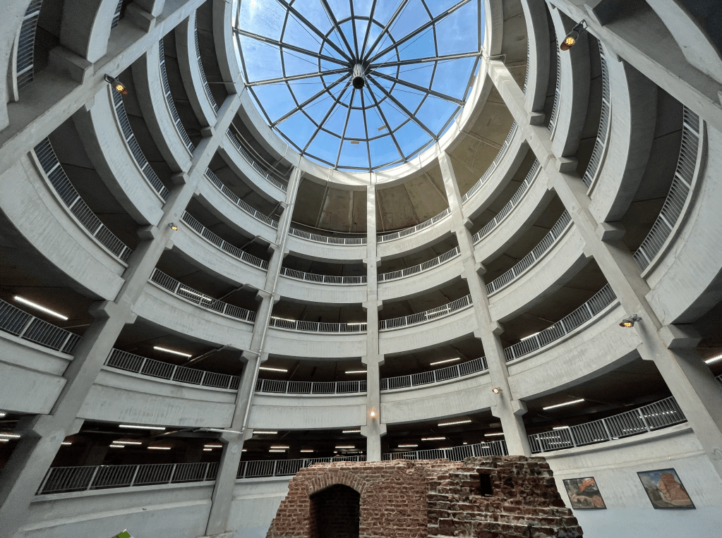 For the Interior design course, I created a life path within a parking garage in Harderwijk. This assignment was very open-ended, where you had to choose an existing building and design something within it based on your vision. I selected a parking garage in Harderwijk because of its unique structure. It is cylindrical with an open center, providing intriguing sightlines. I was also inspired by the constant movement in the building. Cars are constantly going up and down, and there are also cyclists and scooters. Additionally, there is a constant flow of people walking to and from their cars, and elevators going up and down. I saw this as a dance performance within the space, which was one of the reasons why I chose this building.